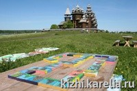 Как на всяком народном празднике, были и гулянья, и ярмарка, и трапеза. На главной "Поляне сокровищ" дети смогли поиграть в кижское домино, изготовленное студийцами "Кижской палитры" под руководст-вом Светланы Петряковой.