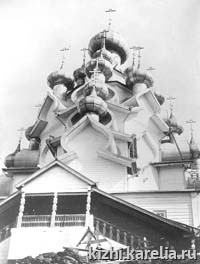 Война оставила неизгладимый след в истории Кижского ансамбля. Заонежье и остров Кижи были оккупированы финскими войсками. В кижских церквях возобновилась служба для финских солдат. Местное оккупированное население стало приобщаться финскими проповедниками к восстановлению часовен и церквей, возобновлению в них службы. Службу вели православные священники на русском языке.