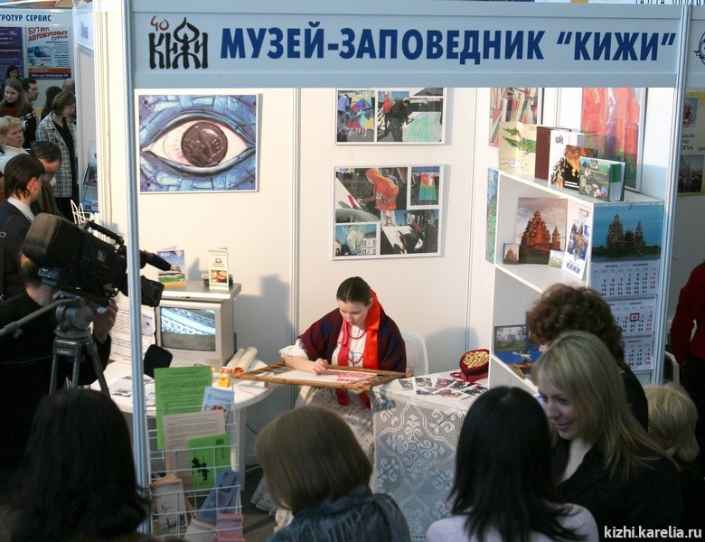Высокие гости задержались у стенда музея-заповедника «Кижи», где их встречала директор музея Эльвира Аверьянова. В год своего 40-летия музей-заповедник «Кижи» выступил на выставке с программой «Музей, открытый миру». На стенде музея прошли презентации услуг, которые музей «Кижи» предлагает посетителям как на острове, так и в городе Петрозаводске: экскурсионное обслуживание, лектории, программу выставок и т.д. Большое количество печатной и сувенирной продукции привлекало внимание гостей. Пользовалась успехом газета «Кижи» — единственная музейная газета в Карелии. Большинство посетителей увидели ее впервые, очень заинтересовались и изъявили желание знакомиться с каждым новым номером.