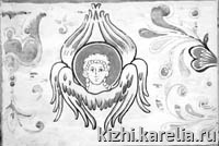 «После рабочего дня я в основном занималась акварелью, которую не должна была сдавать. Мне удалось поработать только в Преображенской церкви, — вспоминает Н.А. Ильинская, – церковь произвела на меня неизгладимое впечатление, особенно интерьер. От иконостаса остался только каркас, все иконы отсутствовали. «Небо» не было зашито: просматривалась вся конструкция и необычайная глубина подкупольного пространства. Конструкция тябл на «небе» была цела, и роспись их мне показалась удивительно интересной... Именно их я и скопировала. Слева от входа в зал тогда стояла приставная лестница, по которой можно было подняться на уровень «неба». Поднявшись туда и обойдя все, я увидела в довольно темном месте фриз с серафимами, который скопировала. Расположение фриза с серафимами помню точно, так как для этого нужно было перелезть еще через балку, то есть точно над алтарем, по периметру алтарных стен. Мне показалось совершенно невероятным его назначение, было жаль, что такую красоту никто не видит. Сама необъяснимость и, если хотите, нелепость его расположения поразила и врезалась в память.