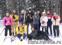 23 февраля при поддержке профсоюза музея-заповедника «Кижи» состоялся лыжный поход, посвященный Дню Защитника Отечества. В очередной раз музейщики продемонстрировали свои «самоходные» качества. Было приятно отметить, что количество участников (15 человек) возросло почти в два раза, по сравнению с 2005 годом. На 12:00 был назначен старт от мостика через лыжную трассу. Вектор движения направлен в сторону Фонтана-1. Первый километр трассы показал, что уровень лыжной подготовки участников сильно различался, поэтому было принято решение устроить базовый лагерь в районе развилки (через 3 км от старта). Достигнув заданной точки, самые опытные участники свернули с лыжни «налево», а остальным желающим была предоставлена возможность съездить до Фонтана. Самым «непоседливым» оказался Сергей Касьянов, который успел объехать оба Фонтана. Ко времени его прибытия в базовом лагере уже весело горел костерок, грелись котелки с чаем и на углях аппетитно шкворчали сосиски. Как водится, у костра было исполнено несколько песен на военную тематику. Время с песнями и беседами пролетело незаметно, и вот пришла пора возвращаться домой. Самое грустное в любом празднике – это то, что он рано или поздно заканчивается. Но ведь приятные воспоминания от хорошей компании, погоды и свежего воздуха остаются!