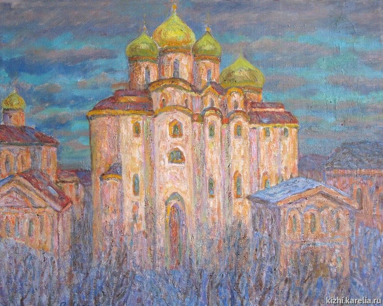Северная природа в разное время года, водные просторы, храмовая и гражданская архитектура Кижей, Валаама, Соловков, Новгорода – основные темы экспонируемых произведений.
