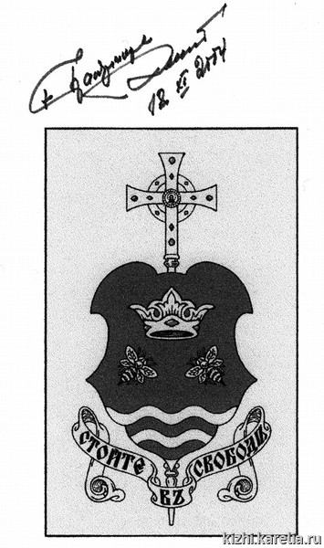 Кстати сказать, в Европе в родовом гербе видели в первую очередь правовой знак привилегированного сословия, на Руси же воспринимали его своеобразным свидетельством трудов, побед и страданий на бранном и духовном поприще. Герб Спасо-Кижского Патриаршего подворья составлен в духе стилистики XVIII века.