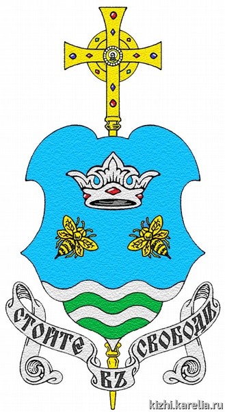 - лазурь щита — воды Онежского озера и небеса над ними;