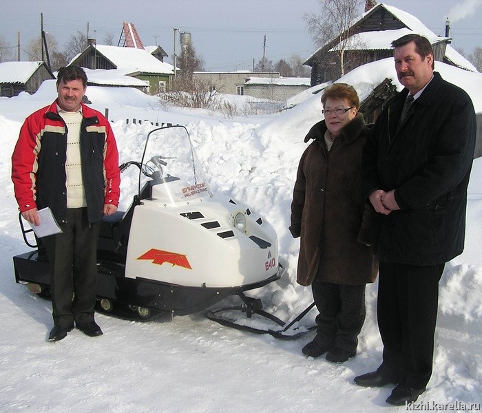 Вместе с директором музея на передачу снегохода в Великую Губу выезжали заместитель директора В. А. Тихонов и начальник отдела по содержанию территории о. Кижи С. В. Пахомов.
