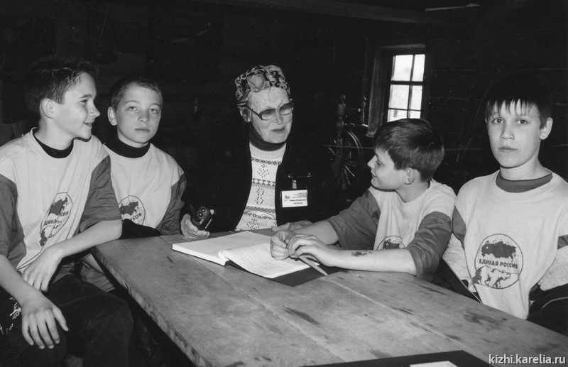 За свою очень непростую жизнь Мария Михайловна осталась совершенно не озлобленной на судьбу. Когда слушаешь ее рассказ о жизни в деревне, о встрече с Крупской, о детском доме и войне, чувствуешь ее время, ее эпоху,— такой она рассказчик. Она, как и ее ровесницы из кижских деревень, по их отношению к жизни являет собой истинное лицо современного Заонежья с его древними и неумирающими традициями.