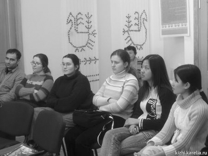 Иностранные студенты из Ирана, Германии, Ливана, Вьетнама, Турции, Дании, Швеции посетили выставку «Народное декоративно-прикладное искусство», где широко представлены вышивка и ткачество Заонежья и Пудожья. Старший научный сотрудник отдела истории и этнографии музея-заповедника «Кижи» Людмила Трифонова увлекательно и интересно рассказала иностранцам об истории костюма жителей русских регионов Карелии, о традиционном жизненном укладе заонежского крестьянства. Перед гостями выступили участники Фольклорно-этнографического театра музея-заповедника «Кижи», продемонстрировав вокальное и хореографическое искусство Русского Севера.