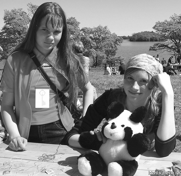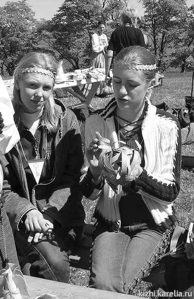 Две девочки — Аня и Алена из Сенной Губы, одетые в русские сарафаны, представляли на ярмарке свои изделия из бисера и кружевные салфеточки. Этим по традиции занимались и занимаются многие женщины в Карелии. Научились всему они у своей мамы. Мама — Лилия Александровна Ке-пи, молодая женщина с открытым милым лицом, сказала: «Для девочек самое главное в жизни — быть рукодельницами. Сначала стало интересно старшей, за ней и младшая плетет и вяжет свои первые вещицы. Ведь того, что они научились делать, теперь не купишь в магазине. Радует, что у дочек есть и терпение, и настырность, и желание всему научиться. Мы с удовольствием приехали на ярмарку, это для нас уже привычно».