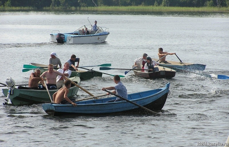 На финише всех порадовала лодка, в которой гребла Жанна Гвоздева — руководитель фольклорно-этнографического театра музея, и помогавшие ей песней под гармошки двое молодцов. Они получили специальный спонсорский шуточный приз от Юрия Чиркова — руководителя казачьего ансамбля «Братина» «За возрождение казачьих традиций на острове Кижи». Именно среди казачества бытовало таковое: мужчины заняты песнями, а женщина — трудом.