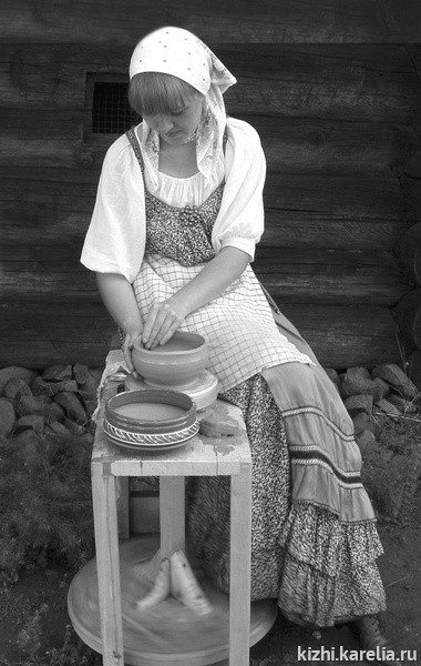 Кроме кижан, петербуржцев, в экспозиции работает Екатерина Логвиненко, научный сотрудник Карельского краеведческого музея. Третий год подряд она работает во время своего отпуска на кижской земле, демонстрируя гончарное ремесло, одно из самых древних, освоенных человечеством занятий. Ножной гончарный круг, на котором работает Екатерина, сделан по ее собственному чертежу.