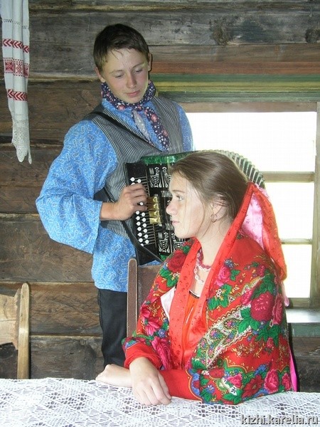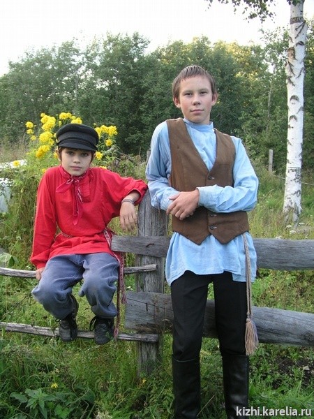 Никого не удивляет, что «жарниковские» (это на каникулах они жарниковские, а так — петрозаводские, петербургские) дети — все! — поют, пляшут и играют в фольклорной группе музея, вместе со взрослыми, своими мамами, папами, тетями, сестрами, братьями и бабушками. «Их не заставляют заниматься фольклором. Все происходит естественно, как бы само собой. Дети просто живут как деревенские жители. Девочки начинают шить себе станушки и сарафаны, глядя на взрослых-сотрудников, которые изготавливают для себя этнографические копии костюмов для выступлений. Дети с удовольствием надевают их на праздники, учатся вышивать, делать украшения из бисера. Поначалу ребятки просто приходили на репетиции и выступления фольклорной группы, а потом сами начали и петь, и плясать,— рассказывает заведующая сектором „Фольклорно-этнографический театр“ Жанна Гвоздева.— Сейчас в детскую группу ФЭТ входят Мельникова Маша, Гусева Майя, Миккоев Антон, Тере Валя, Аникина Ксюша, Быкадоров Арсений, Кялин Кирилл, Яуханен Анна, Дима Коршунов, Яна Иванова и самые маленькие: семилетняя Натуся и шестилетняя Васена Поповы». Для детей так же, как для взрослых сотрудников, существуют репетиции и занятия, которые летом проходят в Жарниково, а зимой — в Петрозаводске, есть выступления с показом для туристов необычных «выставок», участие в фольклорных праздниках, раз в год бывают гастроли, которых особенно ждут. Детям больше всего нравится выступать, их захватывает стихия народного танца, песни, обряда, игры. Для детей не существует условности, они искренне играют, не понарошку исполняют свои роли. Еще девочки ценят возможность показать свою красоту, «славутность», возможность нарядиться в красивые сарафаны, яркие ленты, надеть бусы, серьги. Всем нравятся аплодисменты и ощущение успеха. Хотя в основе — труд, недетский труд. Чтобы добиться органического показа нематериального наследия Заонежья, дети — как и взрослые — должны многое: и петь «народным» голосом, и двигаться по-народному, и костюм носить, и чувствовать себя естественно.