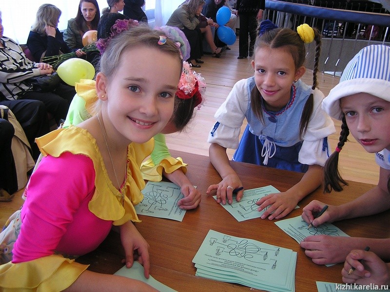 Для многих первоклашек, которые пришли в этот светлый праздник во Дворец творчества детей и юношества на концерт, первым шагом в мир знаний стало увлекательное знакомство с Кижами. Сотрудниками музея были подготовлены необычные творческие задания, которые с удовольствием выполнили не только дети, но и их папы и мамы. Подарком за участие в кижской викторине стало приглашение маленьких учеников и их родителей на бесплатное посещение одной из выставок, которые проходят в презентационно-выставочном центре музея-заповедника «Кижи» (площадь Кирова, 10 а).