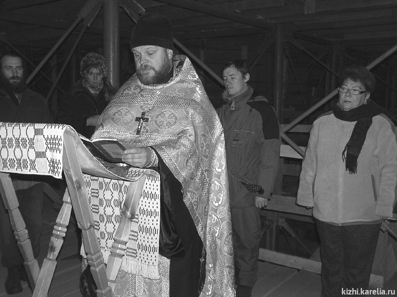 Осенним днем 4 октября, словно в сказке, будто по мановению волшебной палочки, верхняя часть знаменитой Преображенской церкви оторвалась от оставшегося на земле сруба и повисла в воздухе. Парил в небесах верх церкви недолго — через полчаса полета, тяжело вздохнув, церковь приняла свою верхушку обратно. Двадцать «волшебников», двадцать «чудо-богатырей» — сотрудники Плотницкого центра музея, специалисты-монтажники ООО «Алекон» (Санкт-Петербург) — целый день провели на тридцатиметровой высоте, орудуя специальными домкратами, чтобы поднять и опустить шестнадцатиметровый, высотой с пятиэтажный дом, верх всемирно известного памятника. Так, в этот день на острове Кижи прошла уникальная техническая операция по пробному подъему верхнего яруса Преображенки.