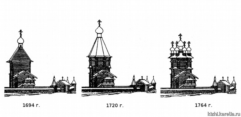 Именно к этому времени была возведена главная церковь погоста – двадцатидвуглавая церковь Преображения Господня, предназначавшаяся для проведения торжественных богослужений в летнее время.