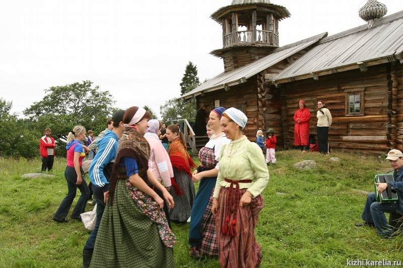 - Главный праздник музея на острове Кижи – Преображение Господне. Пока Преображенская церковь закрыта на реставрацию, торжественная служба в этот день проходит в украшенной цветами Покровской церкви. Крестный ход с хоругвями и иконами, с церковными песнопениями огибает Спасо-Кижский погост. После службы освещаются плоды нового урожая: яблоки, виноград и другие дары природы.