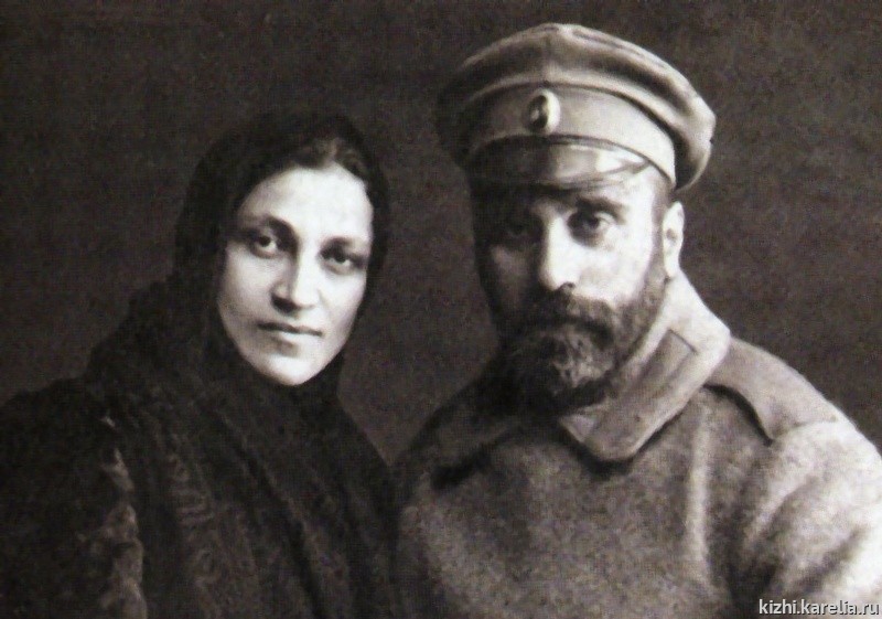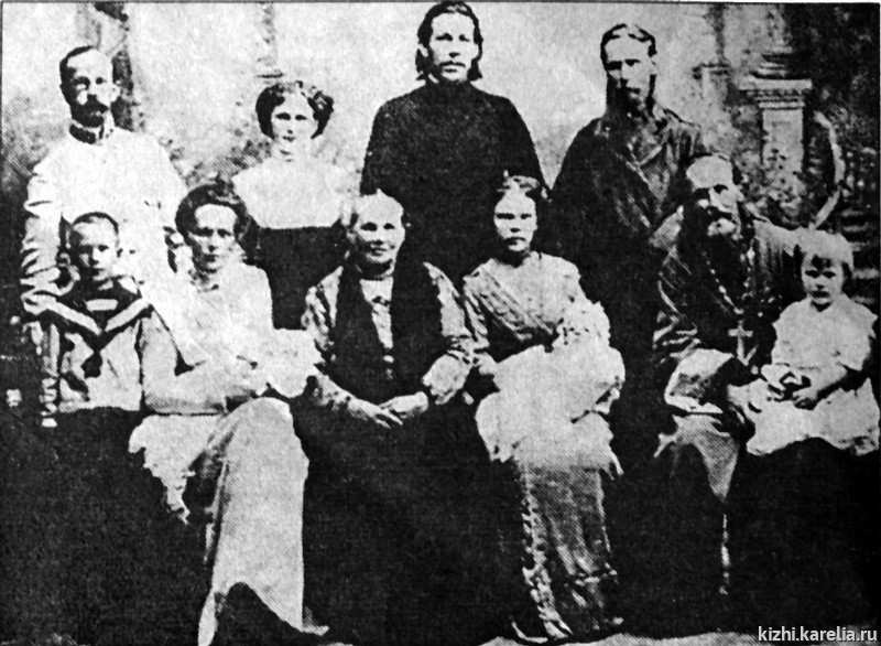 Так на одной из фотографий (фото 2), сделанной в 1913 году, запечатлен священник Кижского прихода Михаил Александрович Русанов (стоит первый справа). Этот снимок был сделан по случаю крестин сына Петра Платоновича Логиневского, дьякона Петрозаводского кафедрального собора (стоит второй справа), и его жены, учительницы Надежды Александровны (сидит вторая справа). На фотографии запечатлен также глава династии священник Платон Ильич Логиневский (сидит).