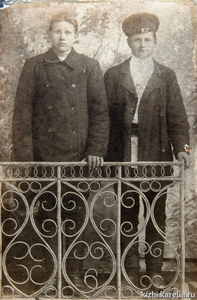 В петрозаводской мастерской М. Роскина снимались и жители Заонежья, которые по делам приезжали в город. На фотографии 1900–1910 гг. (фото 3) из альбома Егоровой Веры Николаевна (1936 г. р., о. Кижи, д. Васильево) слева стоит Петр Михайлович Егоров (1881–1943/44), ее свекор, который принимал участие в Первой мировой и Гражданской войнах, умер от заражения крови в финском концлагере в Петрозаводске.