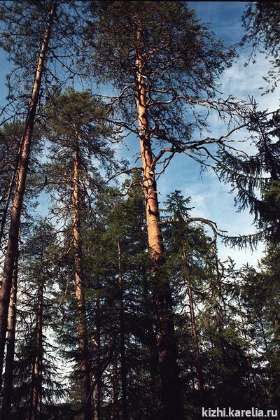 Большинство памятников деревянного зодчества в Республике Карелия построены из узкослойной и плотной древесины сосны обыкновенной, рубленной в возрасте 200-300 лет. К сожалению, в настоящее время очень сложно найти такие деревья. В Республике Карелия, вследствие интенсивного лесопользования сохранились лишь незначительные (16,9% общей площади лесов) участки сосновых лесов возрастом свыше 160 лет. Расположены они в основном северной части республики на природных охраняемых территориях (НП «Водлозерский», заповедник «Костомукшский» и ПНП «Калевальский»).