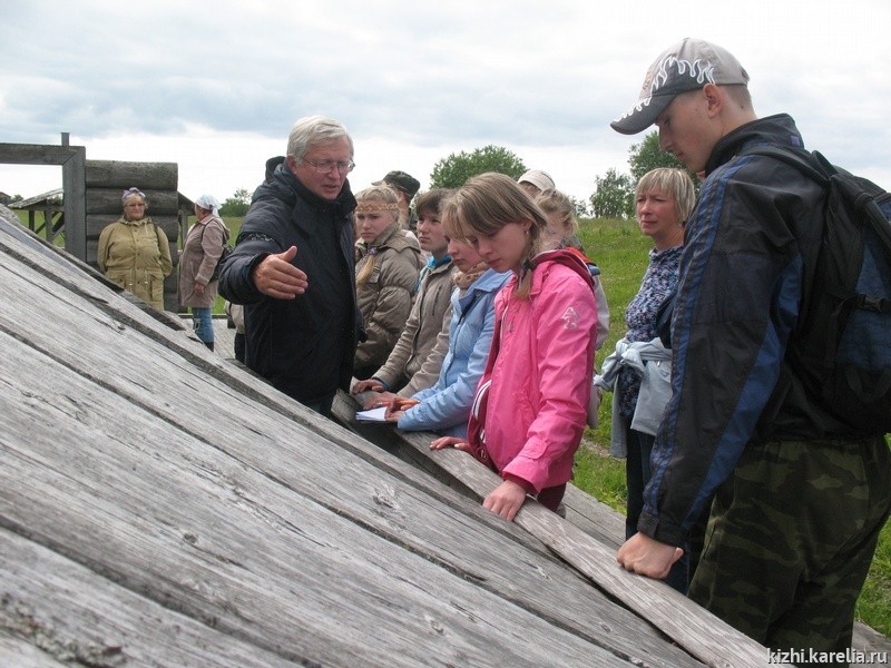 Во время сессии на Кижах, а именно так ребята ее назвали, так как это для них четвертая и заключительная в этом учебном году сессия, после которой они отправятся на каникулы, ученики знакомились с памятниками, точнее даже подтверждали прочитанный ими материал, готовясь к приезду. За несколько месяцев до отъезда из Кировска всем было дано задание найти схожее и отличное в безгвоздевых конструкциях двух территорий. Учениками было прочитано много работ, как по архитектурным особенностям строений Вятки, так и Заонежья. Но, конечно, приехав на остров, они были несколько шокированы увиденным. «Мы начали готовиться к поездке еще в марте. Я, да и никто из ребят, не бывал на Кижах раньше. Я видела великолепные церкви только на картинках, когда читала материалы, но все же, я не могла даже представить себе этого величия храмов и крестьянских домов», делится своими впечатлениями Таня Немчанинова, уже выпускница историко-краеведческой школы. «Честно говоря, когда мы сюда ехали, я даже немного жалела, что поехала, так как погода была ужасная, но, увидев остров с памятниками, мои мысли и чувства сразу изменились и уезжать не очень хочется». Да, остров никого не оставит равнодушным.