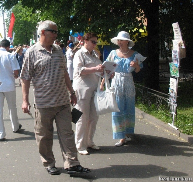 Среди мероприятий, развернувшихся на улицах города в этот праздничный день, была и давно ставшая популярной Аллея прессы, где пресс-служба музея-заповедника принимала участие в четвертый раз, представляя музейную газету «Кижи».