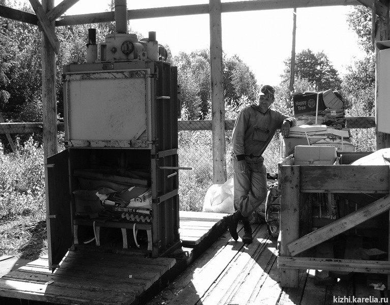 После долгих упорных трудов удалось достигнуть результата – на острове Кижи начал стабильно работать пресс для твердых отходов. Путь этот был долгий – выбор, покупка, установка пресса, строительство навеса и устройство ограждения вокруг него, неудачи первых пробных прессований, выбор и покупка упаковочной ленты, инструмента для ее натяжения и скрепления. Совместно с отделом сохранения и мониторинга природного наследия обустроили площадку у пресса. Затем целый год не могли решить проблему кадров - найти и обучить рабочего. А в завершение летом 2009 года пришлось в срочном порядке доделывать (накрывать рубероидом) крышу над мусорной площадкой, чтобы собранный картон не намокал при дожде. Теперь это все позади.