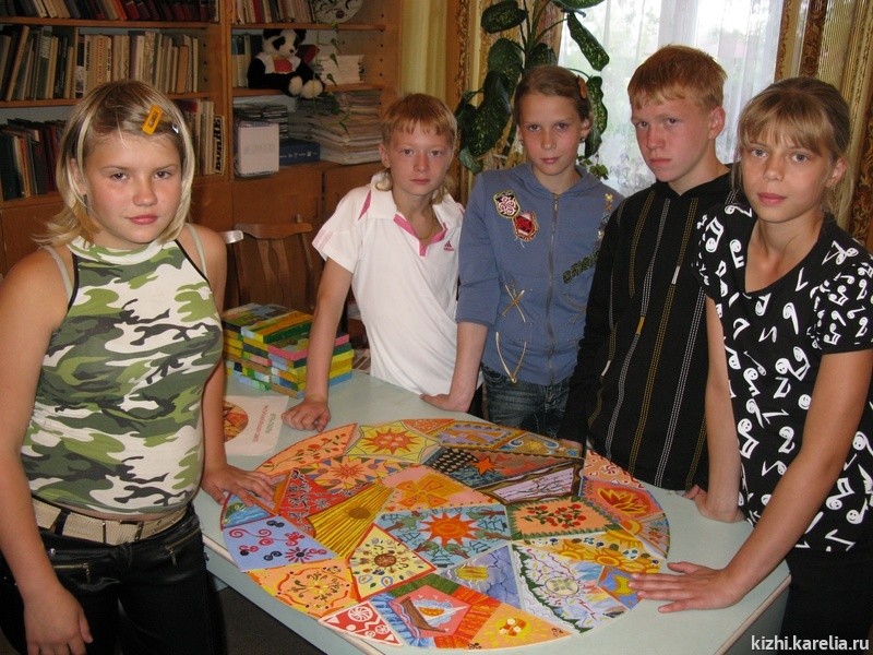 А после этого детей ожидала интерактивная программа, подготовленная сотрудниками Блока музейно-образовательной деятельности Галиной Леонидовной Захаровой и Мариной Тойвовной Кочетыговой. Они провели с детьми игры «Кижское домино», «Собери мельницу Сампо», помогли составить пазлы по строениям и интерьеру памятников острова Кижи, и даже разгадали тайны «Ящика с сюрпризами». Сектор организации музейных праздников и мероприятий подготовил для воспитанников детского дома мастер-класс по изготовлению подпояски-оберега. который некоторые из ребят с помощью автора этих строк сделали себе и своим друзьям. Но на этом сюрпризы не закончились: в конце программы все были приглашены на общее чаепитие.