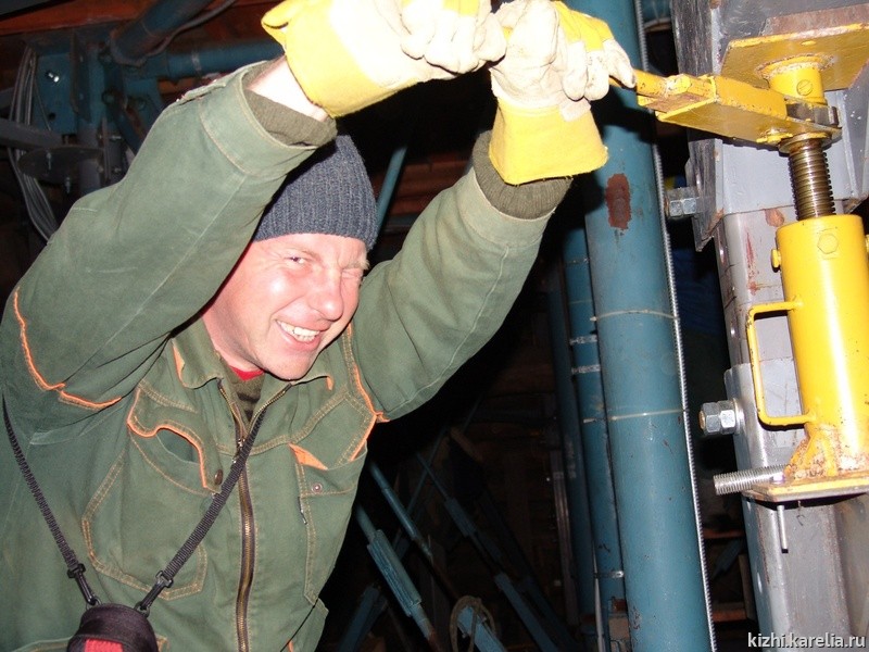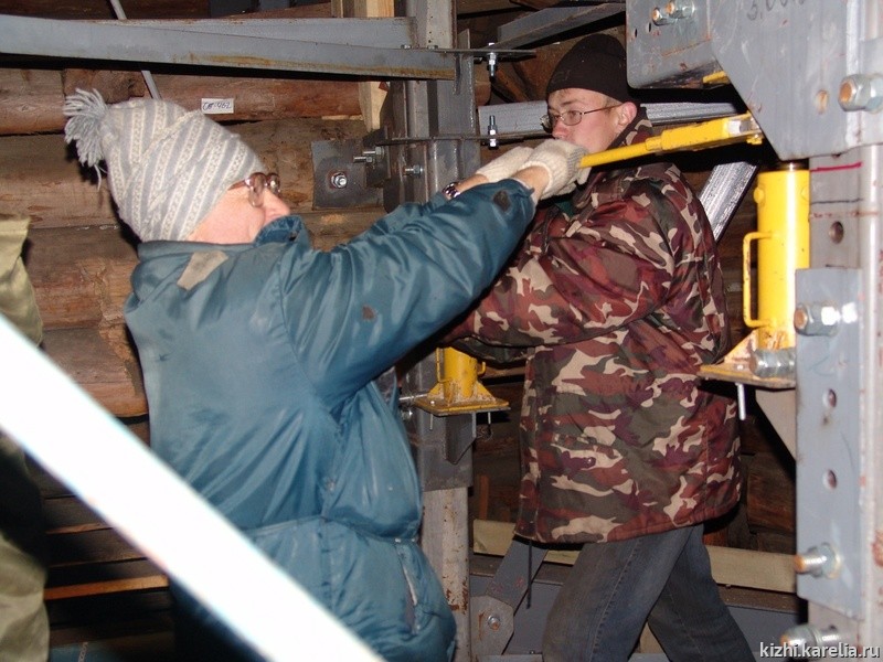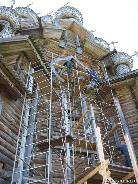 К самому важному событию 2009 г. реставраторы готовились еще с 2004 года, когда был выполнен пробный подъем верхнего реставрационного яруса церкви.