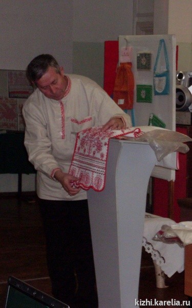 На семинаре, проходившем в стенах Шуньгской средней школы, высветился весь пучок проблем, связанный с производством в нынешних условиях. Представители «Карельских узоров» утверждали, что создание нового производства в Шуньге бесперспективно, если даже фирма в Медгоре сталкивается с таким обилием трудностей, что в пору посочувствовать. Правда, аргументация медвежьегорцев не убедила участников семинара. В выступлениях главы местной администрации и жителей села прозвучала надежда на возрождение традиционного ремесла. На круглом столе были показаны изделия двух местных жительниц, в которых еще только нащупывается новый подход к старинному занятию. Для участников семинара и круглого стола подлинным потрясением стала выставка, организованная музеем-заповедником «Кижи». Филигранное искусство мастериц из прошлого ещё раз напомнило какое богатство мы растеряли! А уж когда Сергей Колтырин начал показывать с трибуны подлинные шедевры из коллекции Медвежьегорского краеведческого музея, то словно из забытого бабушкиного сундука перед нашим взором возникали чудо-полотенца, подзоры, станушки… Кстати, на семинаре было немало людей, приехавших издалека, как, к примеру, делегация из Пудожа.