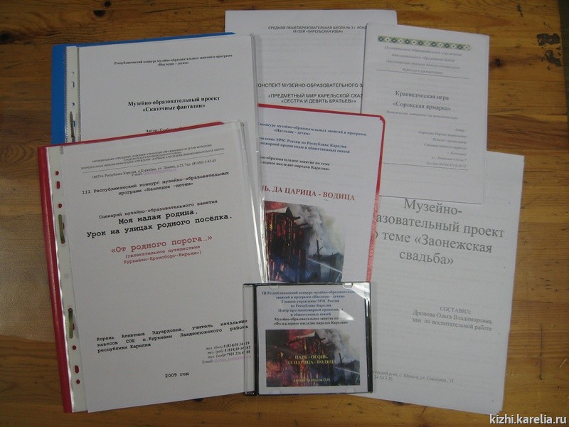 Среди победителей конкурса 2009 года: увлекательная игра-путешествие «От родного порога…» А. Э. Корень из п. Куркиеки, краеведческая игра «Сорокская ярмарка» М. А. Гавриловой из Беломорска, музейно-образовательный проект «Заонежская свадьба» О. В. Дроновой из п. Шуньга и занятие «Царь-огонь, царица-водица» О. Н. Талбонен из Петрозаводска.