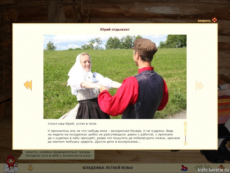 Существенно развилось «Виртуальное путешествие по дому карельского крестьянина» (автор проекта — О. Титова): в результате совместной работы с отделом фольклора виртуальный дом был населён персонажами, что позволило дополнить экскурсию рассказом о традиционных занятиях крестьян Заонежья. Благодаря профессионализму О. Семененко, (фотографии), И. Набоковой, Е. Востряковой, Д. Амбросимовой, Т. Дудиновой, М. Вдовиной и Л. Трифоновой (тексты), Н. Михайловой (музыкальное сопровождение), а также участников ФЭТа музея виртуальное путешествие стало ещё более увлекательным и информативным. Только за 10 месяцев этого года путешествие совершили 7235 человек из России, Европы и даже Австралии. Почти 300 из них — полностью прошли всю виртуальную экскурсию, получили именную грамоту и оставили положительный комментарий.