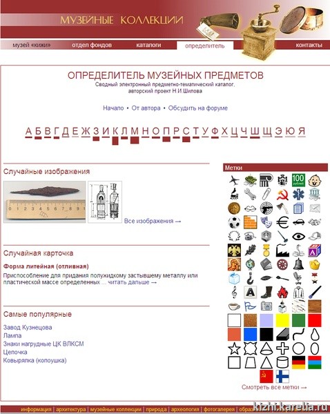 Обновился и раздел «Определитель музейных предметов» — авторский проект Н. Шилова. Интернет-версия проекта предоставляет пользователю возможность интерактивного поиска предмета, в том числе по фрагментам известной информации.