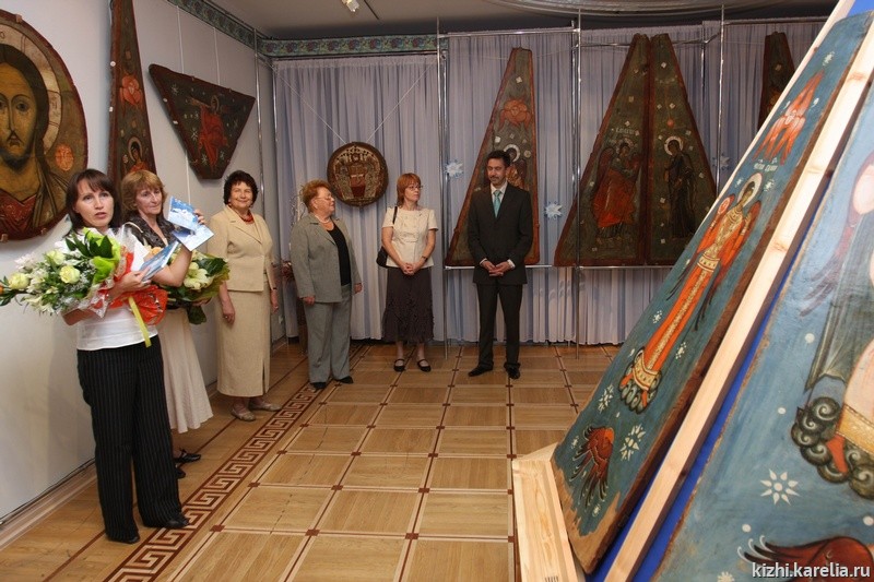 «От лица компании «Северсталь» я рад поздравить авторский коллектив проекта «Небеса Заонежья» с открытием выставки и презентацией проекта в целом. Рад, что в числе победителей музей-заповедник «Кижи». Мне кажется чрезвычайно важным, что многолетний труд сотрудников музея-заповедника увенчался открытием выставки и изданием каталога икон «неба» из собрания музея. Сопровождающая выставку мультимедиа-презентация позволяет проследить процесс реставрации, раскрытия и изучения икон и мне кажется чрезвычайно отрадным тот факт, что данный проект реализовался в рамках программы «Музеи русского Севера», инициированной компанией «Северсталь». И мы, не только как спонсоры, но и как идейные вдохновители программы «Музеи русского Севера», с нетерпением ждали реализации проектов всех шести лауреатов конкурса, музей «Кижи» стал первым» – поздравил авторов представитель компании.