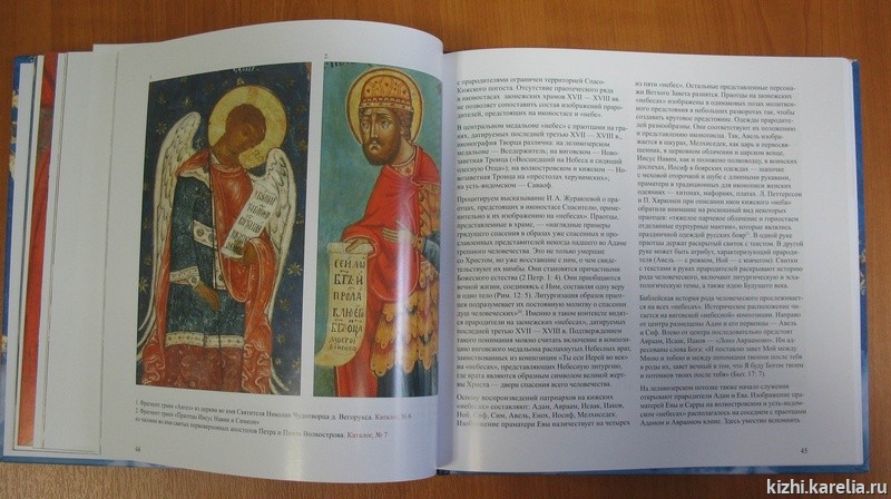 Кроме того, читатели получат информацию об утраченном в годы Великой Отечественной войны «небе» главного памятника музея «Кижи» - церкви Преображения Господня. Информация предоставляется по сохранившимся фотографиям и исследованиям финских ученых Ларса Петтерсона и Пенти Хярконена, которые видели кижские иконы. Альбом-каталог имеет богатый справочный аппарат, который поможет неспециалисту ориентироваться в этой сложной теме.