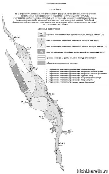Наконец, было решено, что материалы охранных зон утверждает Карелия. Музеем был подготовлен проект Постановления правительства Республики Карелия «Об утверждении границ зон охраны закрепленных за ФГУК «Государственный историко-архитектурный и этнографический музей-заповедник «Ки-жи» объектов культурного наследия расположенных на о. Кижи и на территории «Кижского ожерелья» (за исключением Кижского Погоста) в Медвежьегорском муниципальном районе Республики Карелия».