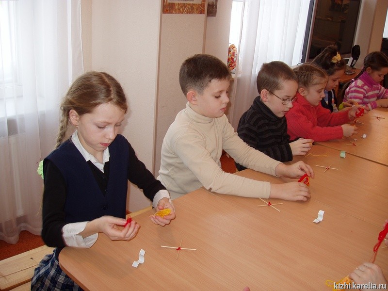 На мастер-классе гости своими руками изготовляли символ Солнышка и забирали с собой в качестве сувенира. Солнце издревле было самым желанным явлением природы для наших северных широт, поэтому его символическое изображение присутствовало не только в декоре крестьянского жилища, но и во многих предметах обихода, утвари, одежде.