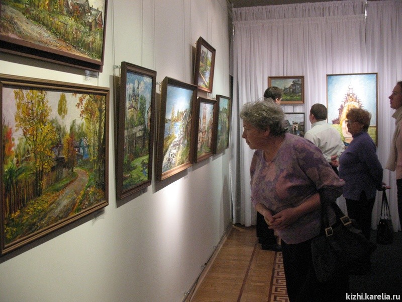 Это их третья совместная выставка, в экспозицию которой вошли пейзажи Русского Севера и Карелии. Каждый из них по-своему увидел Кижи, Сяргилахту, Святозеро, Кивач, Нюхчу, Беломорск, Сумпосад, Великий Новгород, Псков, Великий Устюг.