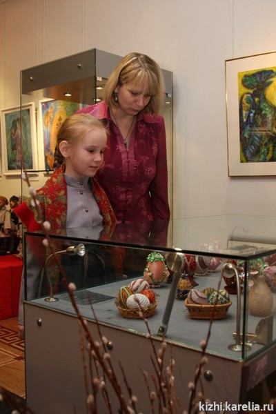 На выставке экспонировалось 378 творческих работ детей и взрослых на тему праздника Пасхи: рисунки, куклы, пасхальные яйца, открытки, сувениры, композиции, а также подлинные предметы из фонда музея-заповедника «Кижи» и из церкви Духа Святого и Животворящего Спасо-Кижского Патриаршего подворья. Особый эмоциональный настрой создали рисунки учащихся детской музейной студии материально-художественного творчества «Кижская палитра» (рук. С. Петрякова), фотографии Владимира и Ирины Ларионовой на тему праздника Пасхи, а также картины из цикла «Верба» заслуженного деятеля искусств России, художника Натальи Кошелевой.