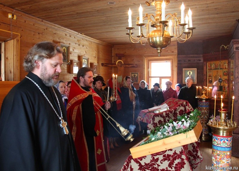 Восьмого апреля в музее-заповеднике «Кижи» состоялись Пасхальные встречи—2010. Начиная с середины 1990-х музей ежегодно приглашает коренных заонежан, потомков известных заонежских родов, на это мероприятие в первую неделю после Пасхи. Пасхальные встречи начинаются праздничным молебном в церкви Святого Духа. Настоятель Спасо-Кижского Патриаршего Подворья протоиерей Николай Н. Озолин поздравляет гостей.