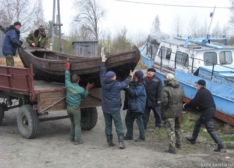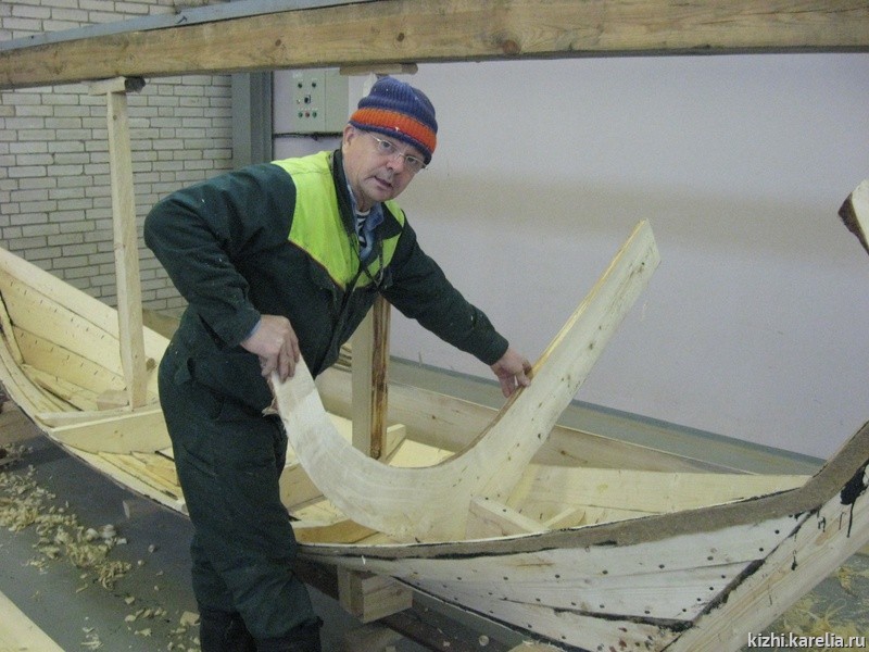 Решили как-то плотники музея сделать лодку, по традиции, да по умению — как мера и красота скажут. Давно на острове не делали лодок, даже старожилы не помнят, когда последнюю сшили. Все есть для работы: и материал выдержанный, и мастерская теплая и сухая, и умение, и желание. Заложили лодку во время февральских вьюг, когда Онего, скованное толстым льдом и укрытое снегом, и не думало о весеннем пробуждении. Шили лодку, как деды учили, да и про технику новомодную не забывали. Хозяйственные мужские руки сразу видны: получилась лодка недолгая, но объемистая. На такой и груз можно свести, и людей покатать. Смолы наварили, да лодку засмолили. Сладили парус и весла. Как лед стаял, так и на воду спустили.