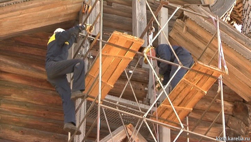 2 августа на Преображенской церкви возобновились работы по монтажу металлоконструкций и реконструкции фундамента. Напомним, что на открытый конкурс на право заключения Государственного контракта на «Продолжение работ 1-го этапа Комплексной реставрации Преображенской церкви Кижского погоста» была подана одна заявка — от ООО «Строительно-коммерческой фирмы «Алекон», город Санкт-Петербург (директор А.А. Савельев). Эта фирма является подрядчиком музея по реставрации Преображенской церкви с 2004 года. О том, какие работы будут выполнены в этом сезоне, рассказывает Александр КУУСЕЛА, ведущий инженер службы подготовки и обеспечения реставрационных работ в музее-заповеднике «Кижи».