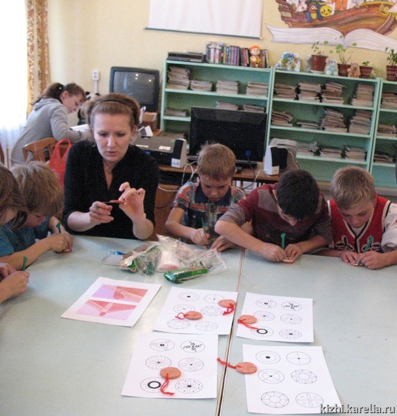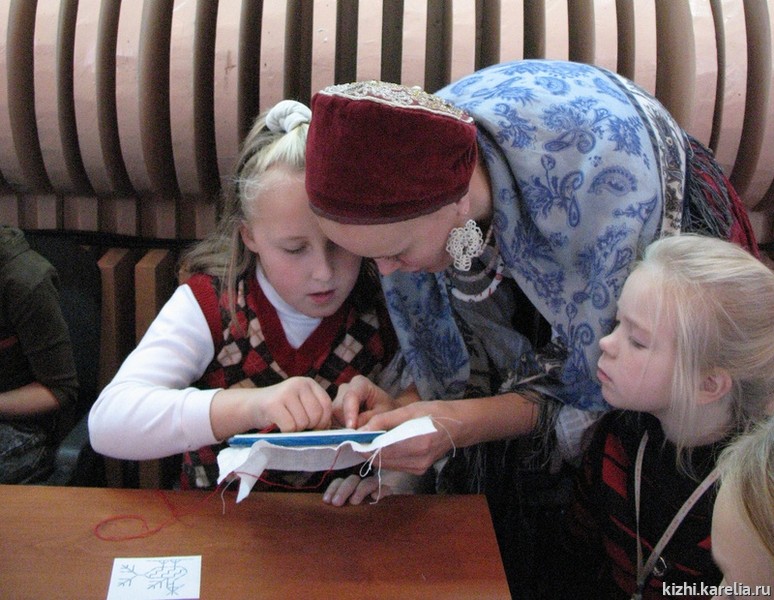 В это время в Доме детского творчества состоялся практический мастер-класс по заонежской вышивке. Сотрудники отдела истории и этнографии Анастасия Яскеляйнен и Татьяна Секушина всех пришедших на мастер-класс детей обучали досюльной вышивке. Среди желающих в основном были шести-восьмилетние девочки, и это даже символично, так как это занятие заонежские девочки в прошлых столетиях начинали осваивать именно в пять-шесть лет. Кто знает, может это первый шаг к большому увлечению, которое в итоге перерастет в дело всей жизни.