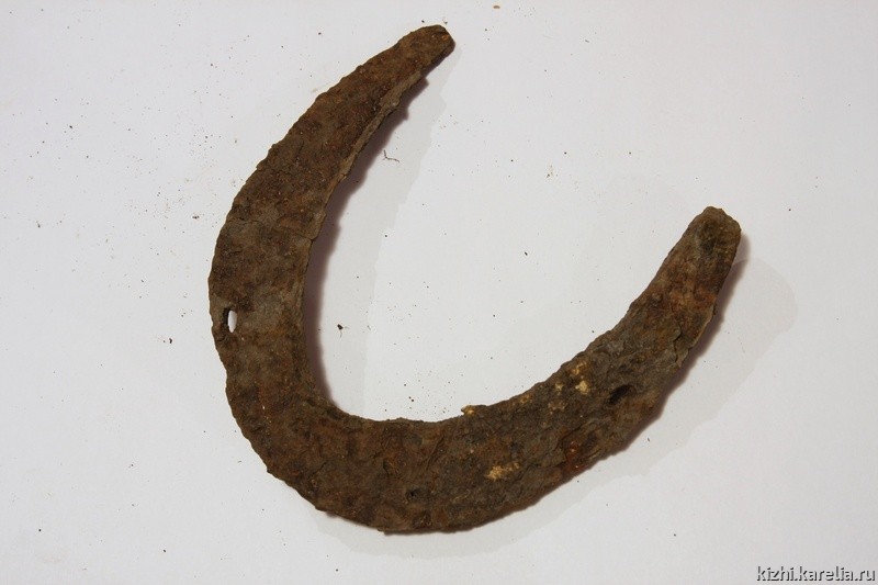 Было также изучено устройство горна, которое позволило выявить интересные особенности. Во-первых, при устройстве свода использовались огнеупорные кирпичи английского производства, о чем говорит клеймо «GOLDENWORKS» на одном из них. Соплом служил обломок чугунного пушечного орудия, произведенного в 60-х годах XIX века в цехах Олонецкого Александровского завода. Также в кузнице использовался брикетированный каменный уголь, видимо из Донбасса, кусок которого был найден в ходе раскопок.
