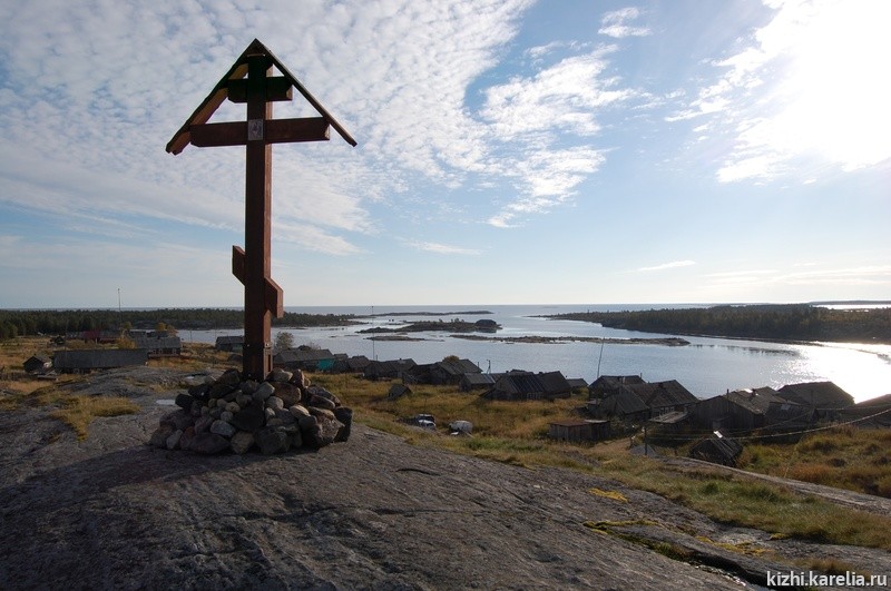 Прямо перед взором, ближе к берегу – старая церквушка, со съехавшим до середины шеста, на котором укреплен крест, куполом. С кряжа открывается великолепный вид на морской залив, выходящий в открытое море. Вдали виднеются острова с колхозными амбарами, сейчас опустевшими.
