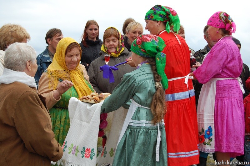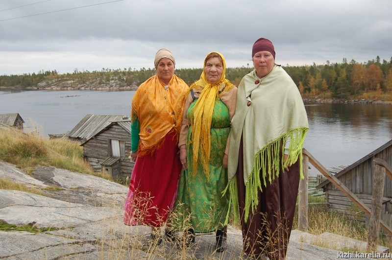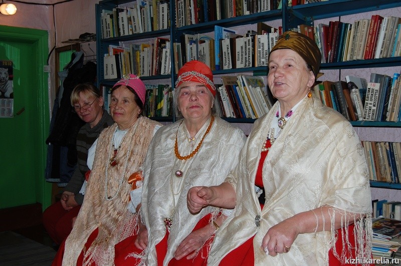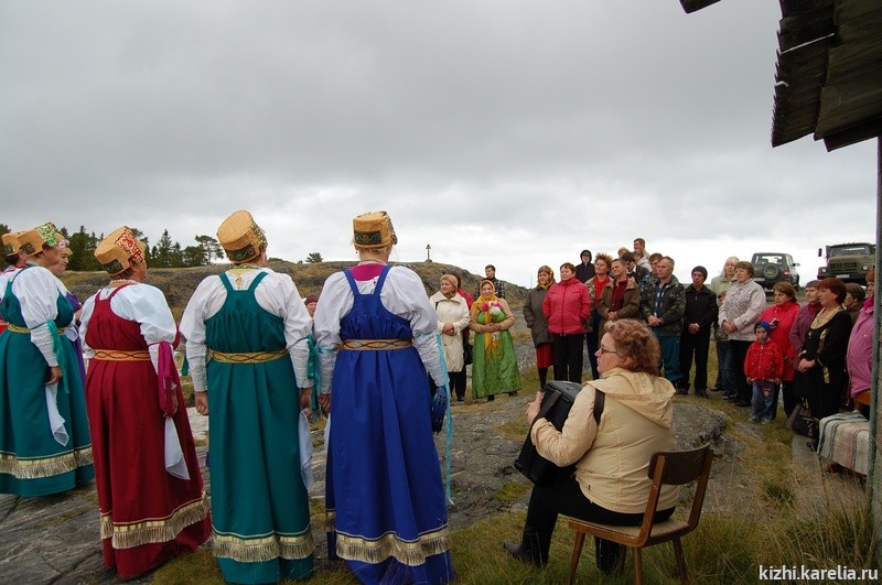 Праздник села, который нам удалось увидеть, проходил опять же на скале, напротив той, с крестом. Здесь находится школа, ее часть отведена под клуб. На праздник пришли все желающие, несколько женщин в старинных сарафанах и повойниках. Так одевались их матери издавна, и традиционная одежда выглядит на гридонках естественно и гармонично. В программе праздника – сход — встреча с районным начальством и выступление самодеятельных коллективов из г. Кеми. Начальству от жителей села досталось: требуется ремонт дороги, нет мобильной связи, стационарных телефонов тоже нет (почему нашу экспедицию и никто не ждал, позвонить туда невозможно), кому-то нужны дрова… проблем очень много. Перед начальством никто не юлит, режут правду в глаза! Таков поморский характер. Да и натерпелись уже достаточно.