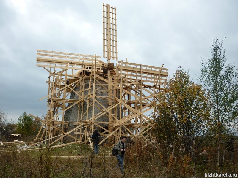 Реставрационные работы на памятнике вела подрядная организация из Петрозаводска ООО «Экситон». По словам директора «Экситона» Ивана Михайловича Осипова, с этим памятником работать было очень интересно, потому что, во-первых, с мельницами им ранее работать не приходилось, а во-вторых, драночное покрытие — в настоящее время редкий кровельный материал для Карелии.