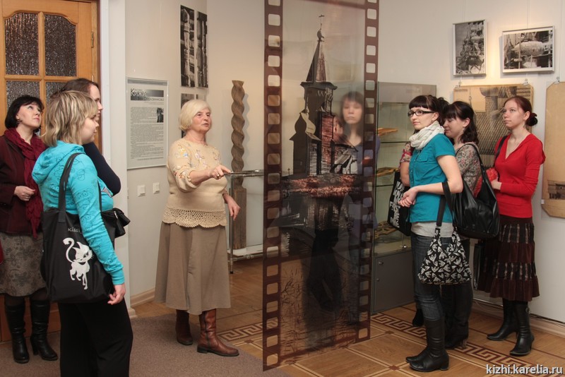 День начался с экскурсии по выставке «Кижи. Век Ополовникова». Выставка посвящена 100-летию со дня рождения выдающегося реставратора, академика архитектуры А.В. Ополовникова и 45-летию музея-заповедника «Кижи».