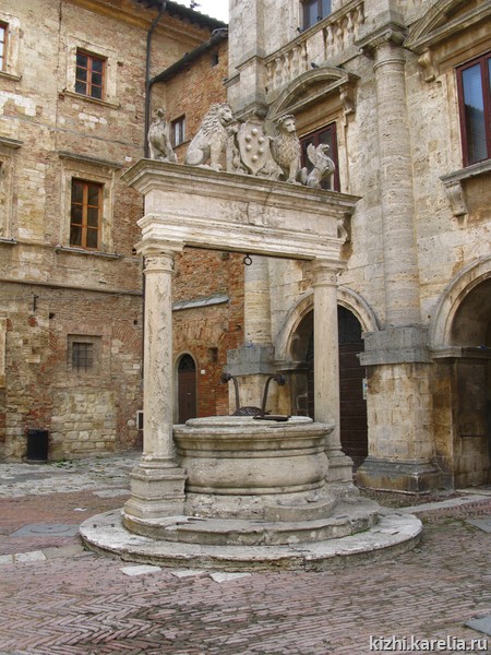 В мае состоялась первая поездка делегации музея-заповедника «Кижи» в г. Монтепульчано для решения вопросов подготовки выставки. Монтепульчано — очаровательный итальянский городок, высоко в горах, красиво возвышающийся над виноградниками и замками долины. Все улочки в этом городе ведут или вниз, или вверх. Хочешь попасть в центр города (где и находится муниципальный музей Монтепульчано) — иди все время вверх. Летом город наводнен многоязыкой толпой туристов.
