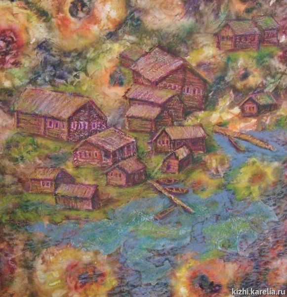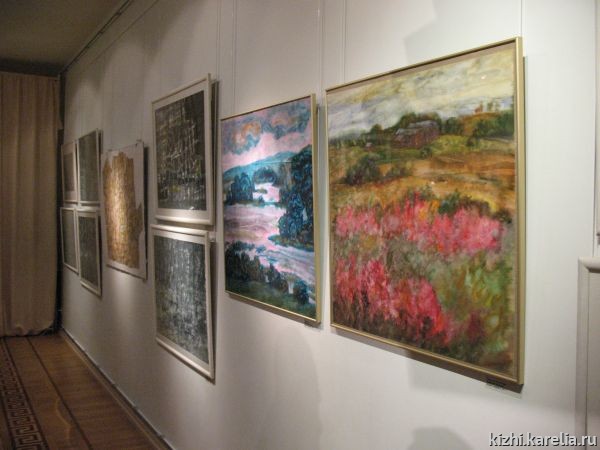 Водные просторы Онего, его поросшие лесом каменистые берега, деревянное зодчество, оставленные ледником седые валуны, — вот характерные черты Заонежского ландшафта. Одновременно это и описание сюжетов многих вошедших в экспозицию работ Натальи Кошелевой и Елены Логиновой, объединённых впечатлениями обеих от посещения острова Кижи, знаменитого музея под открытым небом.