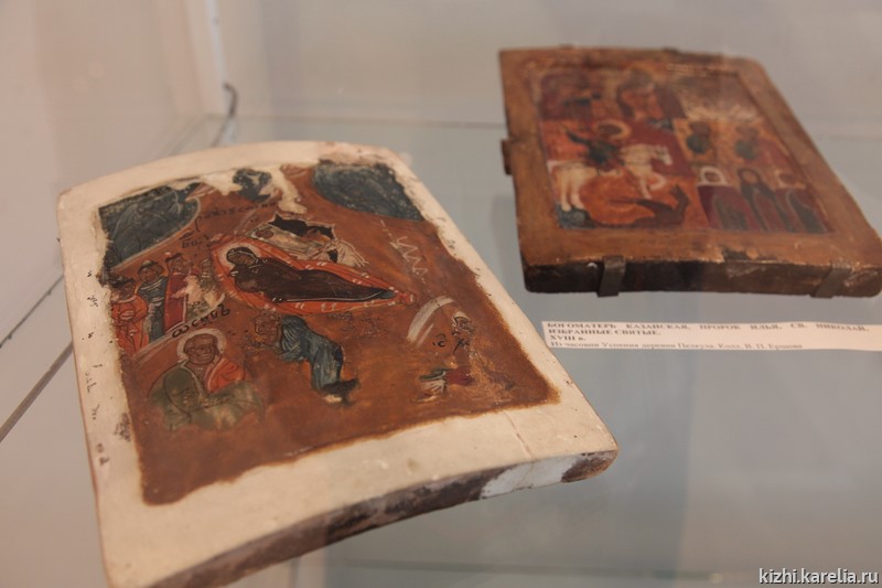 На выставке в Музее изобразительных искусств экспонируются не только иконы, но и другие предметы часовенного обихода — орнаментированные полотенца, принесенные в часовни в качестве «обета», часовенная утварь. Доцент Карельской Педагогической академии Виктор Петрович Ершов предоставил на выставку часть своей иконной коллекции — памятники из двух часовен Сегозерья, а также редчайшие предметы, найденные в кладбищенской часовне деревни Пелкула — челюсть щуки как древний народный оберег, а также крыло глухаря, которое подкладывали под колени при молитве.