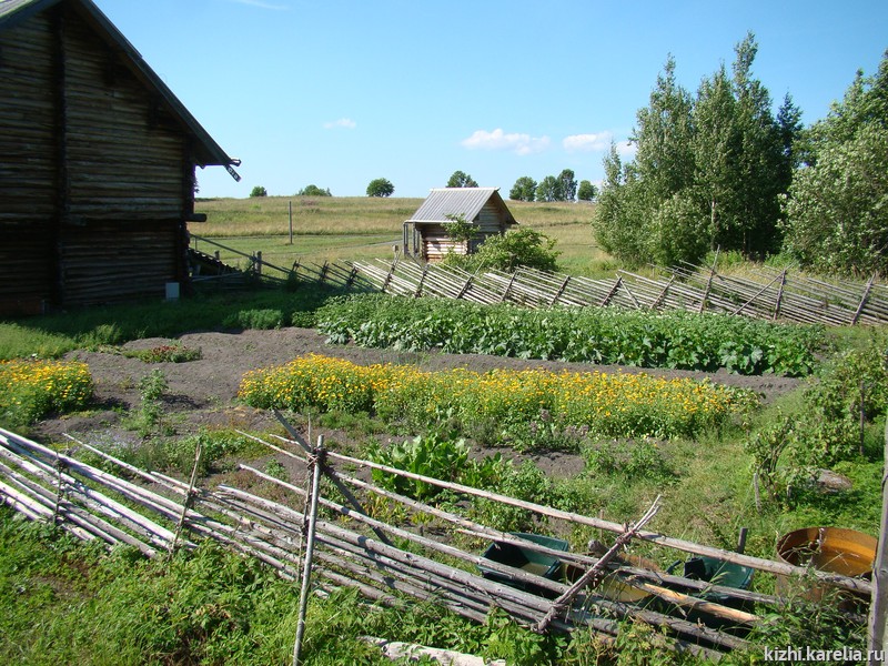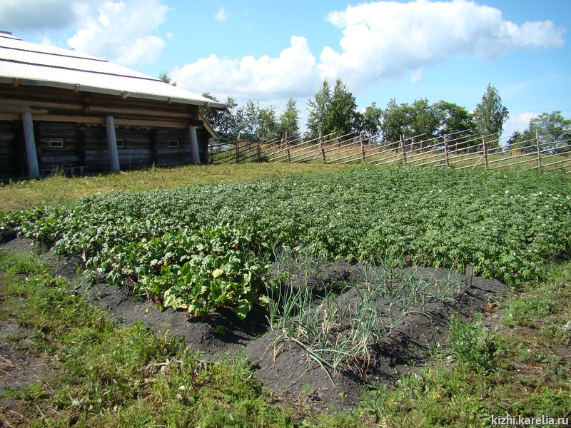Ещё одним элементом ландшафта являются огороды около крестьянских домов, составляющие вместе со всеми жилыми и хозяйственными постройками единое целое – усадьбу. Именно усадьбы создают наиболее полное впечатление о традиционном укладе крестьянских хозяйств. Из года в год задача возделывания огородов решалась силами добровольных помощников – сотрудников музея-заповедника, которые по собственной инициативе в свободное от основной работы время обрабатывали участки земли, выращивали на них традиционные культуры.